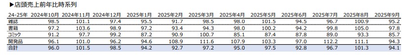 ■2025年9月期 店頭売上前年比調査 文芸書・ビジネス書・新書・総記が前年超えも、全体では94.1%
