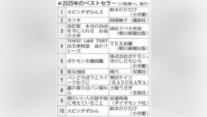 ■今年のベストセラーは「大ピンチ」が席巻 文庫部門は「国宝」が三冠