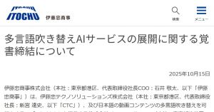 ■伊藤忠、AI吹き替え企業と連携 国内IPのグローバル展開を後押し 背景には「海外の無断翻訳や違法利用」