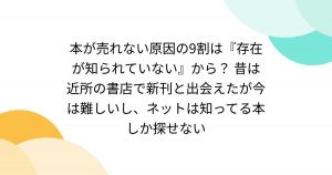 ■本が売れない原因の9割は『存在が知られていない』から? 昔は近所の書店で新刊と出会えたが今は難しいし、ネットは知ってる本しか探せない