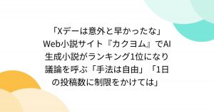 ■「Xデーは意外と早かったな」Web小説サイト『カクヨム』でAI生成小説がランキング1位になり議論を呼ぶ「手法は自由」「1日の投稿数に制限をかけては」