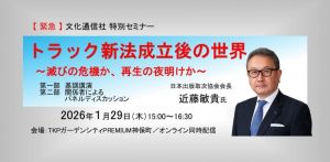 ◆2026年1月29日開催 【緊急】文化通信社 特別セミナー 「トラック新法成立後の世界 ~滅びの危機か、再生の夜明けか~」