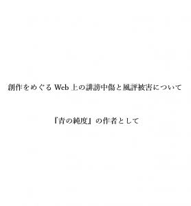 ■創作をめぐるWeb上の誹謗中傷と風評被害について 『青の純度』の作者として