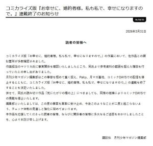 ■月刊少年マガジン、コミカライズ作品連載終了で謝罪「心よりお詫び申し上げます」 他作品の模倣発覚で配信停止